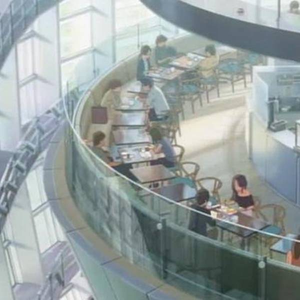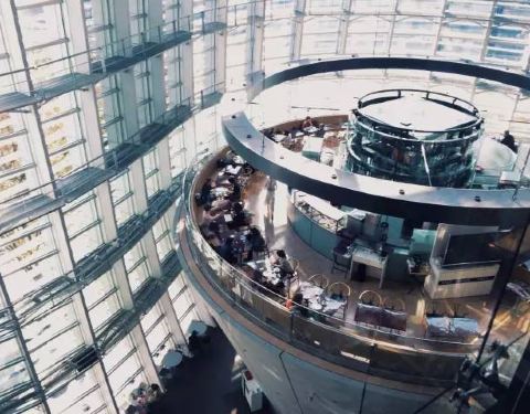 黑川纪章设计下的国立新美术馆,有着由一片片玻璃所组合成的犹如波浪一般的外墙,完美诠释了与周边森林共生共存的印象。室内挑高的空间搭配灰色清水模的高塔设计,随着光线的游移变幻出不同层次的光影表情,整座美术馆仿佛有着自己的生命般地在呼吸。第二次认识国立新美术馆,是因为去年在日本和我们国内都大火的动漫电影《你的名字。》,这里的咖啡厅是男主角泷和前辈约会的地方。到达美术馆已经下午四点多了,看展览不应该在匆匆忙忙的时间下展开,那么就在《你的名字。》里出现的咖啡厅喝一杯咖啡,吃点东西吧。