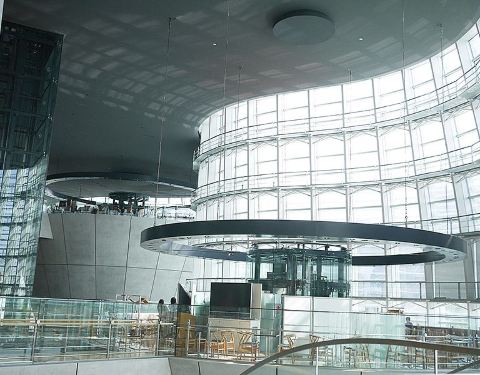 国立新美术馆很特别的是这里没有馆方收藏品,比较像是一个艺术展示空间,入馆不需门票,可以自由地...从地下铁道千代田线的乃木坂站6号出口就可以直接连结到美术馆。国立新美术馆是由建筑大师黑川纪章设计的,采用大量的玻璃帷幕,让自然的光线经过玻璃帷幕透射到室内,减少能源浪费、又可以享受自然光线的美感。 ...从地下铁道千代田线的乃木坂站6号出口就可以直接连结到美术馆。国立新美术馆是由建筑大师黑川纪章设计的,采用大量的玻璃帷幕,让自然的光线经过玻璃帷幕透射到室内,减少能源浪费、又可以享受自然光线的美感。 国立新美术馆很特别的是这里没有馆方收藏品,比较像是一个艺术展示空间,入馆不需门票,可以自由地在馆区观赏。 美术馆内的空间设计别具特色,内有两个倒立上宽下窄的圆锥体,一个较高一个较低,分别在顶端的空间规划为餐厅和咖啡厅。 展开