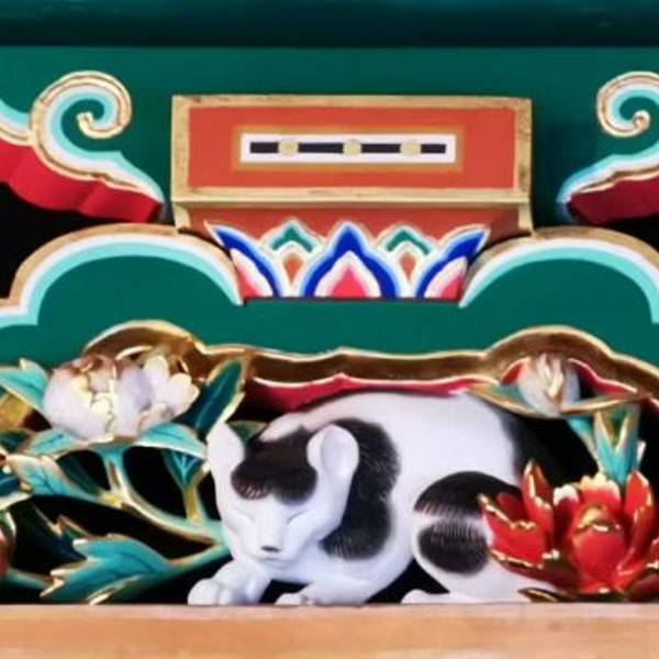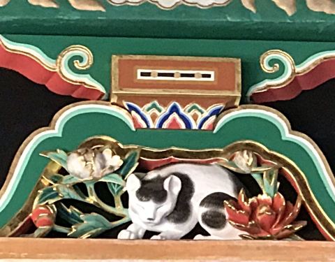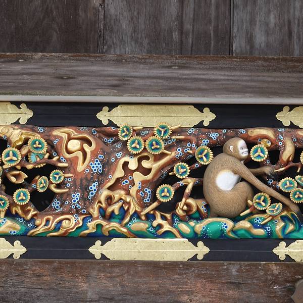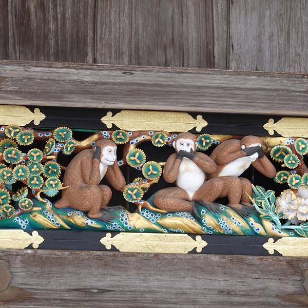 回音如龙鸣一般,而在药师堂其他地方拍打木板,则不会产生任何回因,因此,这条水墨画中的龙被称为“鸣龙”日光东照宫位于日本枥木县日光市,始建于元和3年(1617年),是为了纪念开创了日本历史上260余年和平发展黄金时期的江户幕府开创者德川家康而建造的,是德川家康最后的长眠之地。 日光东照宫汇集了日本古典建筑的...日光东照宫位于日本枥木县日光市,始建于元和3年(1617年),是为了纪念开创了日本历史上260余年和平发展黄金时期的江户幕府开创者德川家康而建造的,是德川家康最后的长眠之地。 日光东照宫汇集了日本古典建筑的精华,整个建筑群金碧辉煌,美仑美奂,被列入世界文化遗产名录。 日光东照宫砖雕木雕非常精美,大量以动物为主题的木雕是一大特色。其中以“三猿”、“眠猫”、“鸣龙”最为著名。 神马所在的神厩舍壁面上设有8组猿猴雕刻,以猿猴的故事反映人的一生,从出生,到少年、青年时期,以及遭遇挫折、恋爱、婚姻等各个阶段。 《三猿》是这一组猿猴雕刻中最为著名的作品。《三猿》位于第2组,三只猿猴分别以手捂耳、口、眼,名为“勿听猿、勿言猿、勿视猿”(日语中“勿”和“猿”同音),取意自《论语》的“非礼勿视,非礼勿听,非礼勿言”。 “眠猫”位于德川家康长眠之处——奥宫,是奥宫的保护神。一说象征和平:在由德川家康结束战乱而开创的江户时代里,猫悠闲地睡眠,麻雀自由地嬉戏。猫与麻雀是天敌,却可以和平相处。另一说:猫是假装睡觉以麻痹入侵者。据说德川家康生前爱猫。 “鸣龙”位于药师堂顶部,入内参观时,神职人员会在绘有一条龙的水墨画下方拍打木板,回音如龙鸣一般,而在药师堂其他地方拍打木板,则不会产生任何回因,因此,这条水墨画中的龙被称为“鸣龙”。 展开
