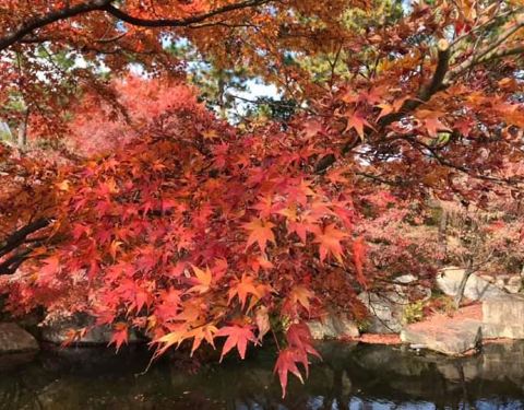 名古屋的德川园是日本最后一代幕府大将军的私人宅邸,位于名古屋市内,有观光巴士可以直达,由于在市内温度较高,是名古屋一带可以最后观赏枫叶的地方了。