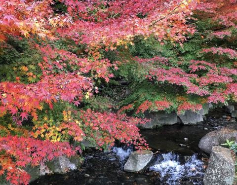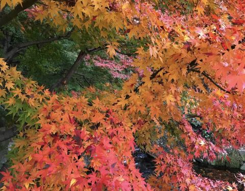 德川园的红叶见倾,难得的是一棵树上各种颜色,深深浅浅,我忍不住作诗一句:霜叶红于二月花。。。