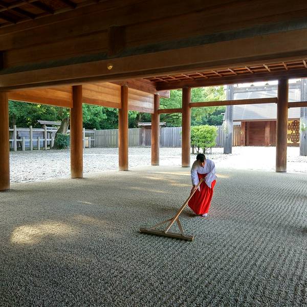 热田神宫是日本最古老的神社之一,至今已有1900年的历史,以供奉日本三大神器之一的草雉剑而闻名。大殿供奉武尊和宫箦媛、以及天照大神、素盏鸣尊、见稻种命五位神明,在日本历代都极受重视,近年日本天皇和皇后还曾到此参拜。热田神宫内古木参天,植物生长茂盛,空气清新。神宫建筑都是由木头打造而成,柱子上的纹理清晰可见。期间能看到神社巫女穿着白衣绯裤,正在打扫和整理神社,保持神社的洁净。