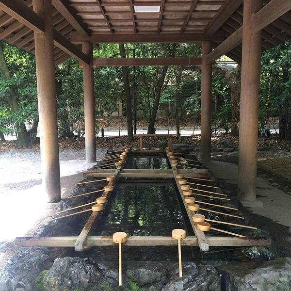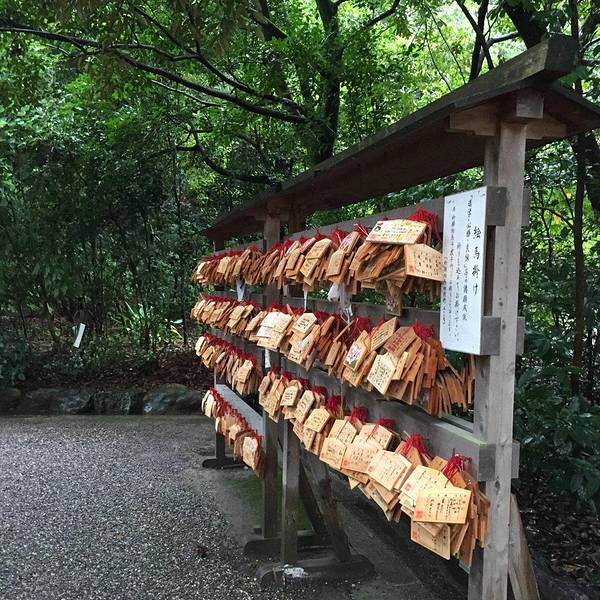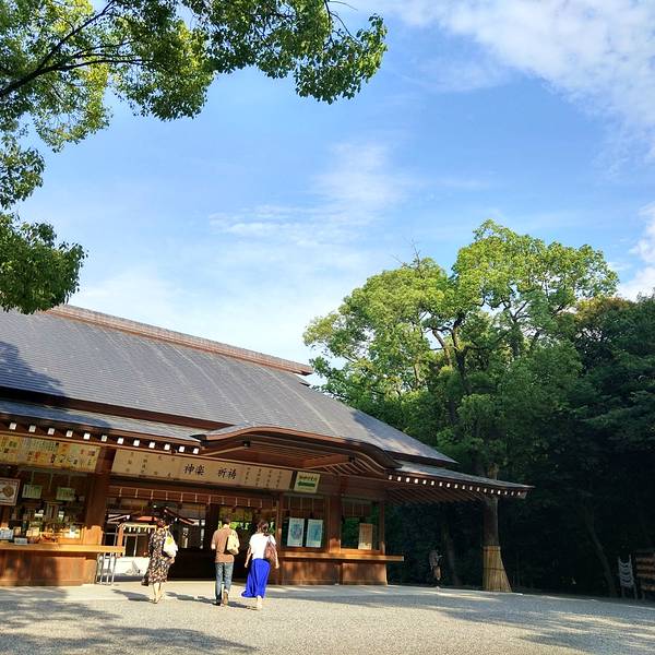 金骆驼 单独参观热田神宫是免费的,宝物馆300日元/人。非常适合文艺小青年过去看看热田神宫在名古屋比较有名气,因为它里面有本三大神器之一的草雉剑,可惜因为没有请导游,在里面看到了很多刀剑,没认出来。热田神宫虽然很有名气,但是游客特别少,进到里面的人除了我们,就是去祈福的日本虔诚...热田神宫在名古屋比较有名气,因为它里面有本三大神器之一的草雉剑,可惜因为没有请导游,在里面看到了很多刀剑,没认出来。热田神宫虽然很有名气,但是游客特别少,进到里面的人除了我们,就是去祈福的日本虔诚参拜者和举办婚礼的新人。从大门口进去,整个地势结构是呈现L形状的,里面郁郁葱葱全是参天古树,这里的古树都是老古董了,很多都有千年之久,整个景区笼罩着宁静庄严的气氛。而且这篇森林有很多鸽子和乌鸦,它们基本都不怕人,很任性的停在路边,到了日本这种情景可是屡见不鲜。热田神宫里面其实有很多商铺,可能是人少的原因基本都没有开。热田神宫是不能直接进去的,必须得先洗手,里面有一个非常古朴的洗手池,要用竹筒打出来洗,而且这洗手池也非常古老,周边布满了苔藓,周边都变成了红色。热田神宫最吸引人的地方就是里面的就是宝物馆,一共两层,一层是一些古老的文献,有一些中文的,不过也不怎么看得懂,还有一层是一些古董类的艺术品,不过比起国内很多博物馆的来相差很远。去的时候偶遇一对新人在这举办婚礼,非常有意思,参加婚礼的人都穿着黑白色的衣服,而且还挂着草绳带,佩戴黑色的花,实在令人瞠目结舌,后来问日本的一个朋友,他们送的礼物更加特别,是墓地,估计意思是祝福新人白头偕老吧。
