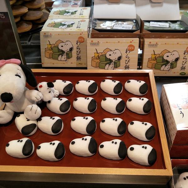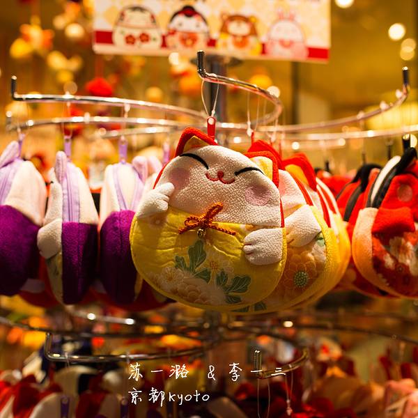 【锦市场】锦市场是我到达京都的第一站,被这里的灯笼吸引,又想沉浸在小摊子里不出来。据说锦市场在天正年间就开始存在了,作为江户时代生鲜食品批发地“锦之店”而闻名。现在,这里更是热闹不凡:商铺大多销售鱼、贝类等海产品、蔬菜、腌菜、干货、小吃等,据说这里可是有“京都的厨房”的美誉的!而我最喜欢的,就是这里的小吃店了:洋食烧、天妇罗、稠鱼烧,一个赛一个的好吃!有专门卖史努比主题的食品店,有京都特色的可口可乐,有好看的樱花酒,还有很多特色的京都美食:大头蛋八爪鱼、烧鳗鱼、玉子烧等~在这里穿梭,实在是太幸福了!除此之外,还有一些日式传统服装的店铺,不仅有和服,还有日式浴衣、工艺品、小玩偶等,对于这些小东西,我的抵抗力简直为零。但是这里的腌菜我就不敢恭维了,所有的菜和瓜都是皱巴巴的,下面试水渍,上面铺着一层宛如糠一般的细碎杂物,还散发着不甚好闻的气味,我是非常不习惯的。这里的人络绎不绝,在这里呆上半天,就可以了解到日本当地人民的生活,有什么比当地的菜市场更加能够了解民俗民风的地方呢?