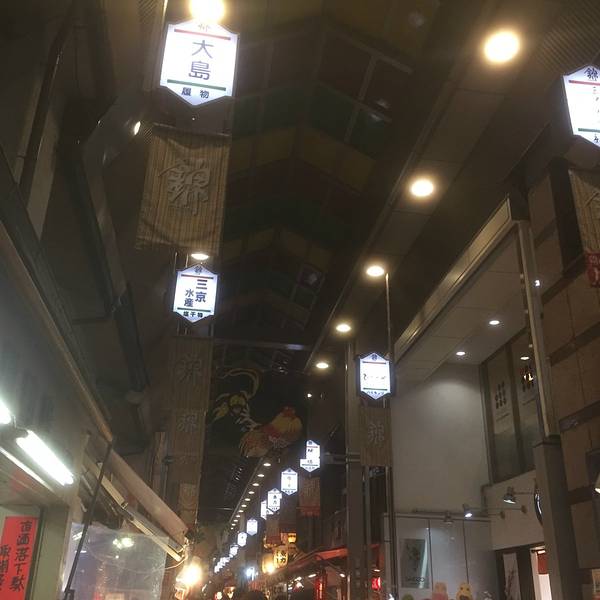 锦市场商店街是京都很值得造访的地方,距离四条乌丸很近,算是市中心了,挨着新京极步行街。入口处有一家kyk炸猪排套餐店,有一楼和地下一楼在这里也吃过一餐。锦市场给我印象最深的地方是很多寿司店,价格合理很...锦市场商店街是京都很值得造访的地方,距离四条乌丸很近,算是市中心了,挨着新京极步行街。入口处有一家kyk炸猪排套餐店,有一楼和地下一楼在这里也吃过一餐。锦市场给我印象最深的地方是很多寿司店,价格合理很多现做的,还有刺生比如红鱼、鲑鱼、北极贝等等,购买了味道很鲜美。还有很多日本的梅子以及泡菜,这些价格就比较贵了,泡菜一斤折合小100元甚至更贵的很多,店铺绝大多数都是收现金的,店员基本上不懂英语,手舞足蹈也不难搞定。 - 但是貌似只能享受午餐,看来吃生鱼片的几乎都是游客,晚餐的话就来不及啦!也算是去了京都必逛的一处吧实用