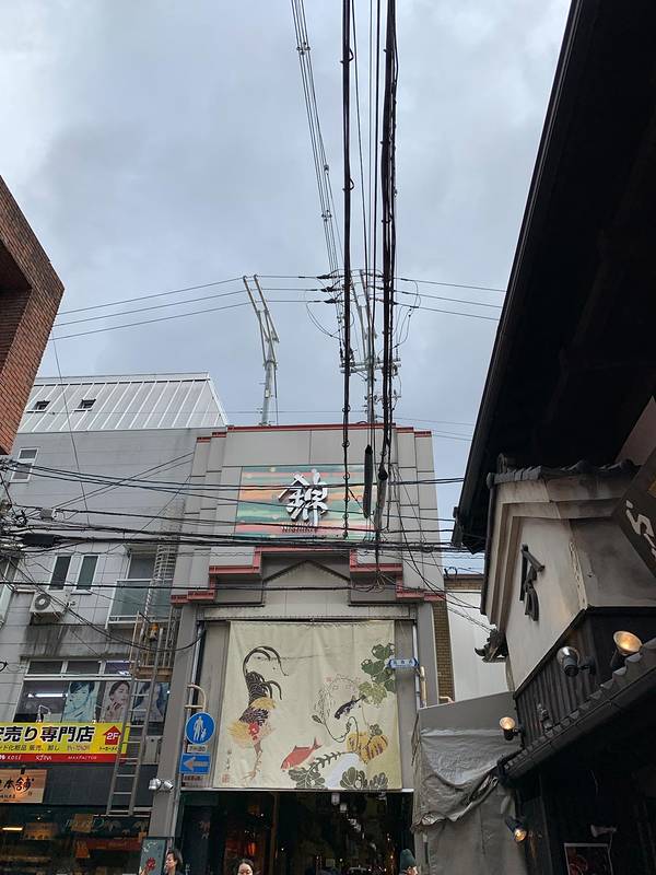 中午起床退房,觅食,步行走向锦市场,依然有些小阴天,还好穿的厚,路上光大腿的日本妹子,真为他们的膝关节、踝关节担忧。