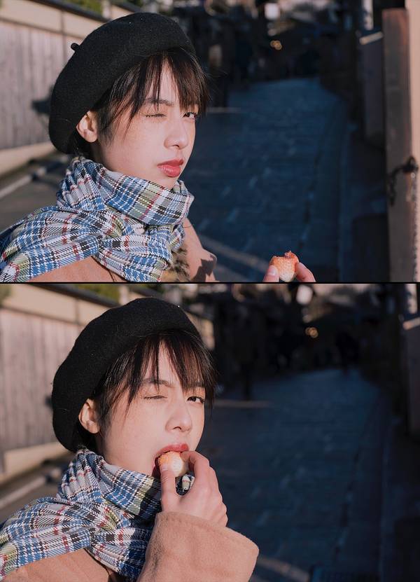 在路边开心的拍起了照片,连冷都不觉得了。等车的间隙在京都街头我们进行了疯狂的拍摄,小马同学很上镜,我想把她拍成电影女主角。我等的人怎么还不来锦市场是传说中的京都人的菜市场,让我惊叹的是菜市场特别干净,每个档子卖什么东西都各有特色。各种各样的小吃。中午在锦市场吃一碗日本乌冬面,暖暖胃。来之前就听说日本的草莓很好吃,这个草莓比普通草莓颜色淡些,1000日元,折合人民币60多块。普通的红草莓只要500多日元,贵了一半。