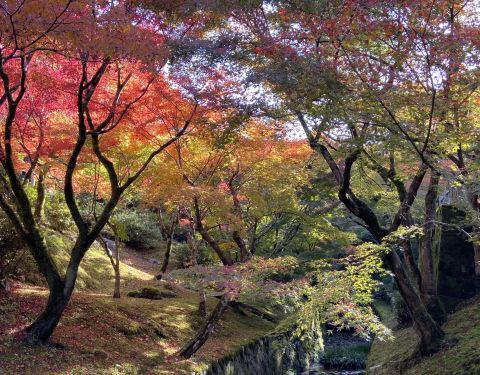 虽然通天桥河沟里的红叶没那么红,但是河沟之上的红叶却是非常的艳,的确是赏枫名寺东福寺是京都的著名赏枫之地,我们这一次的京都赏枫之旅就从东福寺开始。从京都站搭乘JR三分钟就可以抵达东福寺,交通非常的方便,一路看着路标往通天桥过去就没错了。通天桥是东福寺红叶最集中的地方,但是我们1...东福寺是京都的著名赏枫之地,我们这一次的京都赏枫之旅就从东福寺开始。从京都站搭乘JR三分钟就可以抵达东福寺,交通非常的方便,一路看着路标往通天桥过去就没错了。通天桥是东福寺红叶最集中的地方,但是我们11月19号来到这里的时候,还没有到达最红的阶段。因为今年是暖秋的缘故,如果是在往年,这里早就是火红一片了。虽然通天桥河沟里的红叶没那么红,但是河沟之上的红叶却是非常的艳,的确是赏枫名寺! 展开