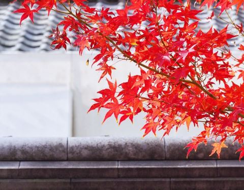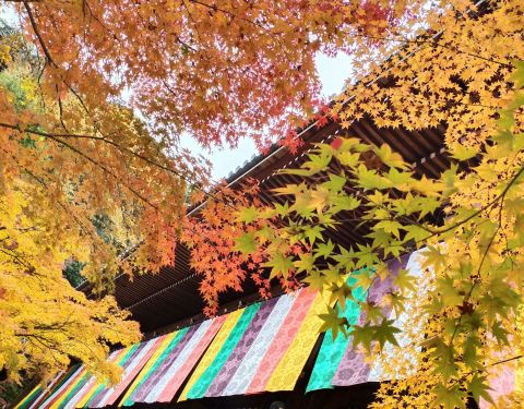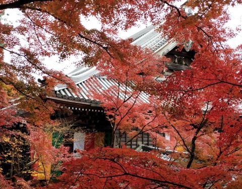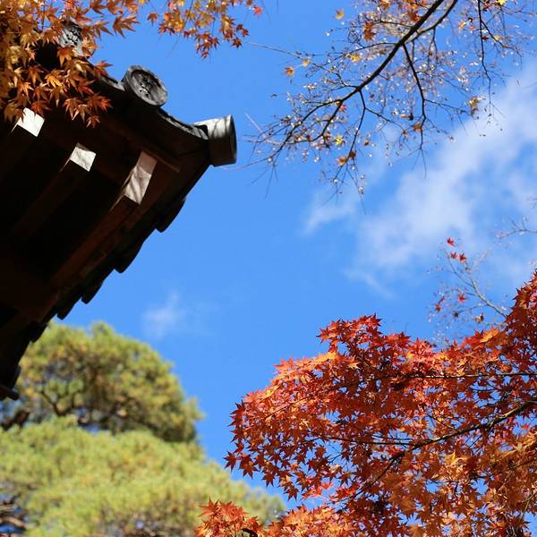 参观寺内国宝—山越阿弥陀图及金铜莲华文盘,每年秋天欣赏枫叶。