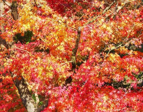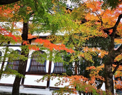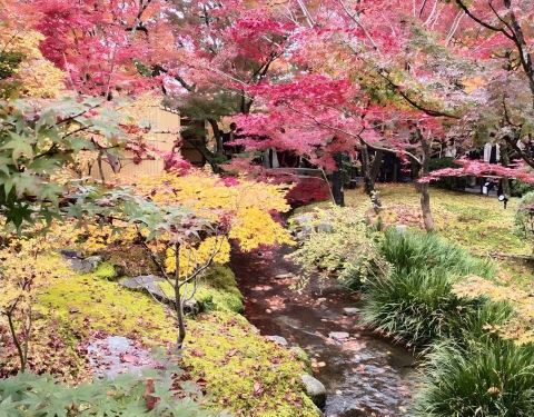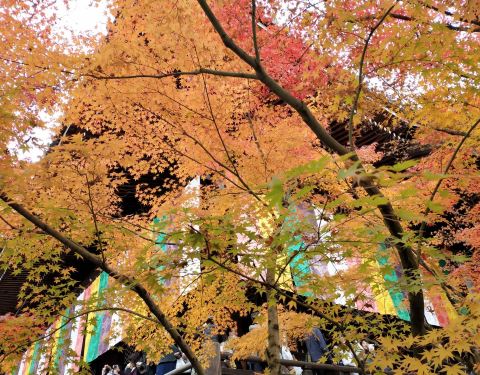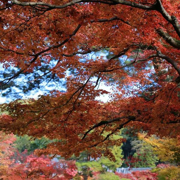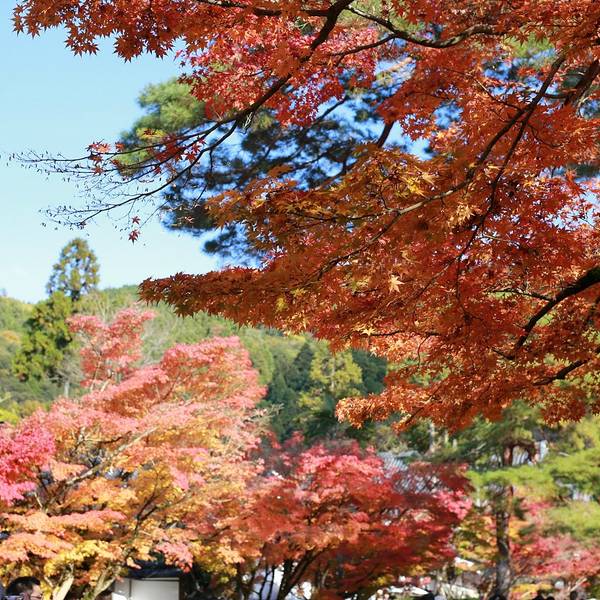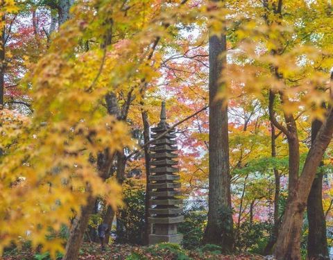 禅林寺其实不算大,但寺内有3000多棵枫树,可以说整个寺庙内充满了枫树。你可以看到五彩的,甚至说超过5种颜色的树叶。由于地势有高有低,禅林寺不同色彩的树叶可以说是层次分明,也让它被冠上了「最美枫叶庭院」的称号。