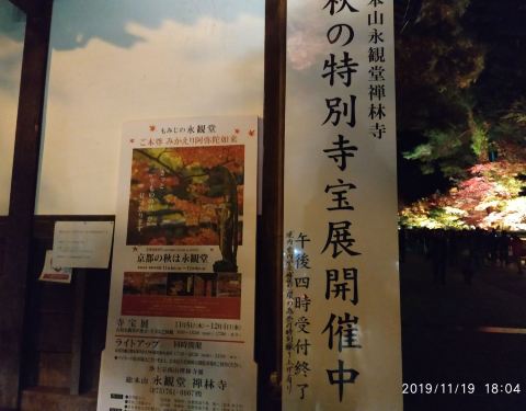 在红叶季的这段时间里,日本各大赏樱名所的夜樱都是开放观赏的。据说晚上开灯之后永观堂的红叶的美会double。由于我们当天白天已经走的太累,没等到天黑开灯,就赶紧回酒店休息了。我记得临走的时候来买票看夜景的队伍已经排成长龙了。