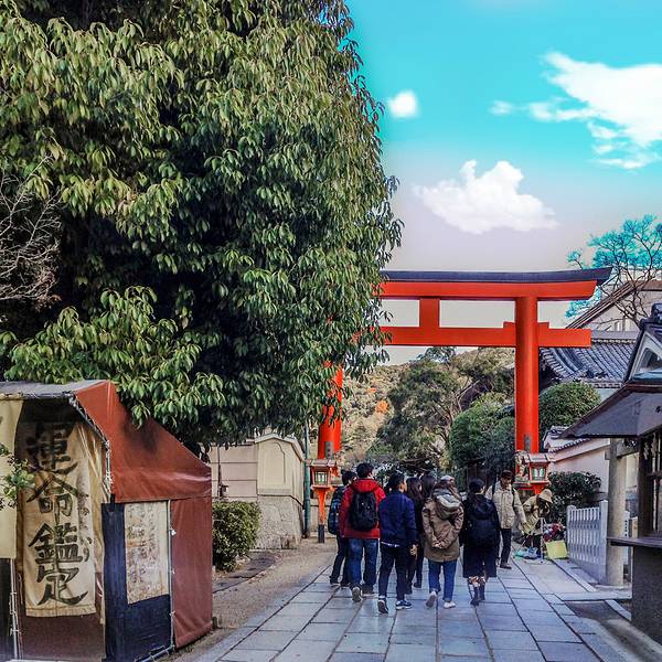 神社进门感觉有点像锦市场内部一个小门前的布局,