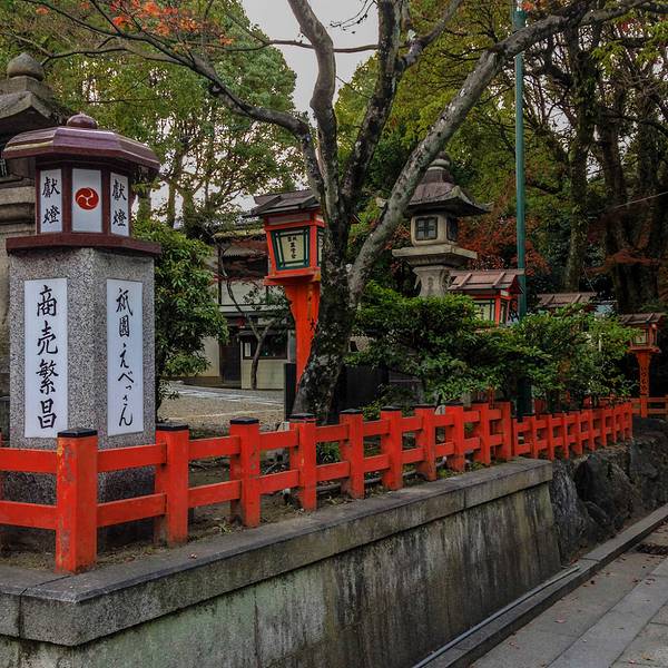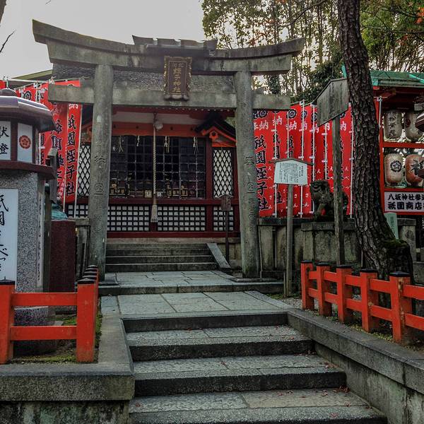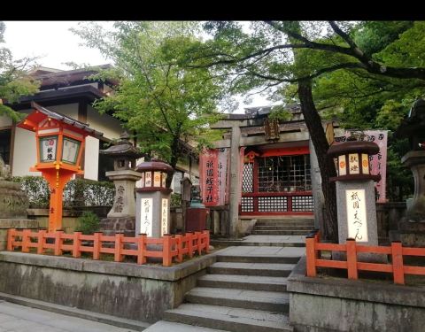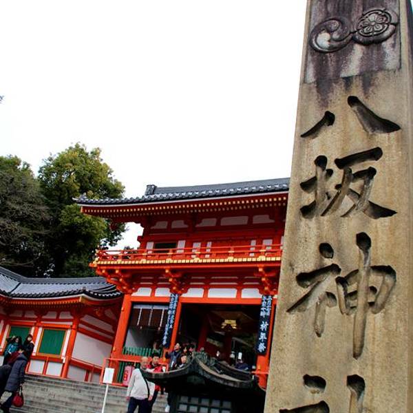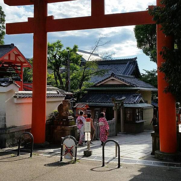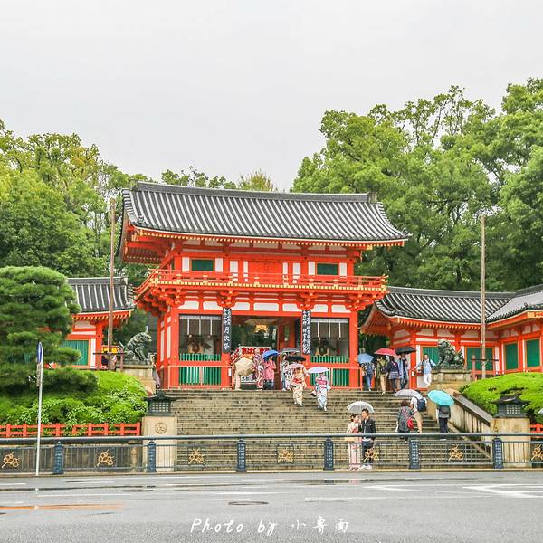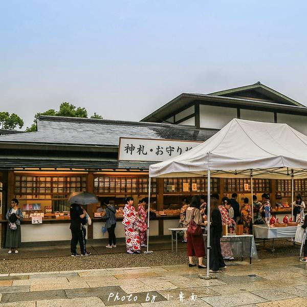 八坂神社在袛园区域,神社门口两旁有小摊贩,卖手信和小吃,零食等等。价格都不贵...从清水寺沿着三年坂二年坂,经石塀小路,一路走到八坂神社还蛮近的。即使是穿着和服木屐,也没有觉得辛苦。大概10几分钟的路程。