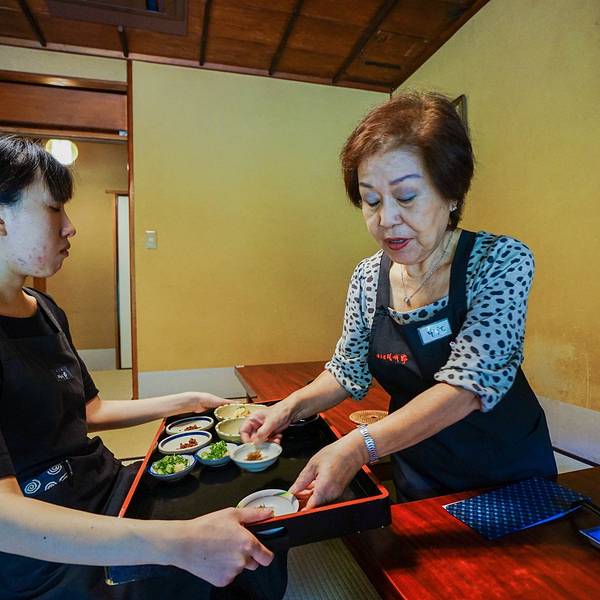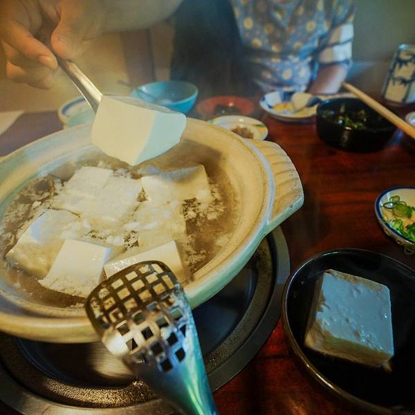 他家的环境一级棒,如果坐榻榻米的话,服务员会把客人引导内堂,经过一个小花园溜达到11点,我们就开始跟着导航去找嵯峨野汤豆腐。这家是汤豆腐的店很多人推荐,但是不接受预定,只能稍微早点儿去省的排队。到了之后果然是第一个,完全没人,可能没那么火爆吧。其实之前想预定广川鳗鱼饭,不...溜达到11点,我们就开始跟着导航去找嵯峨野汤豆腐。这家是汤豆腐的店很多人推荐,但是不接受预定,只能稍微早点儿去省的排队。到了之后果然是第一个,完全没人,可能没那么火爆吧。其实之前想预定广川鳗鱼饭,不过没有订到,又不想排队,只能换个口味了。他家的环境一级棒,如果坐榻榻米的话,服务员会把客人引导内堂,经过一个小花园。我们去的时候午饭只有一种套餐,就是汤豆腐,其他时间可能会有冷奴和素面套餐。套餐除了一锅汤豆腐外,还有格式小菜,一份天妇罗和米饭。豆腐就是清汤煮的白豆腐,非常清淡,配上酱油吃。小菜分量很小,食量大的男士可定不够吃,对于口重的我也不是很适应。最后基本就是酱油豆腐盖饭了,而且下午很快就饿了,就当尝尝鲜吧。大婶会一一介绍上来的小菜,有英文菜单。 展开
