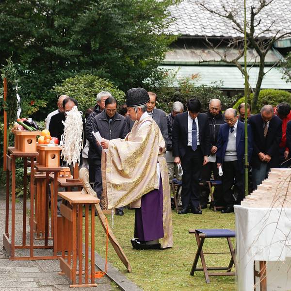 ▼三重塔秋日一抹红露遇一个很可爱的神社, 日本 的神社开卖的吉祥物,真的是各有千秋,很有为它付费的欲望。进行着仪式的人们 展开