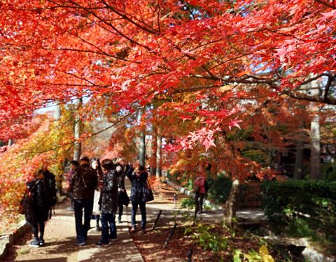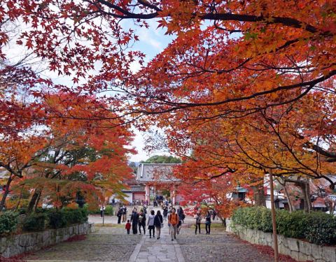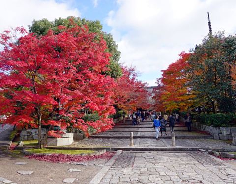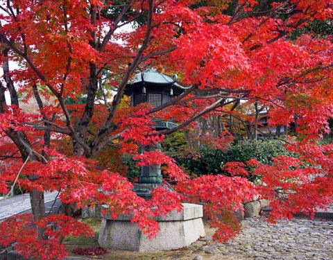 京都赏枫名所之一,距离另外几个名所金戒光明寺、南禅寺、禅林寺都不远。去的时候正值叶子红透的时候,象鲜血一样。这枫树很多,所以也导致红的先后不一。我去的时候外围还红透着,内部塔附近的树叶子倒都掉光了。
