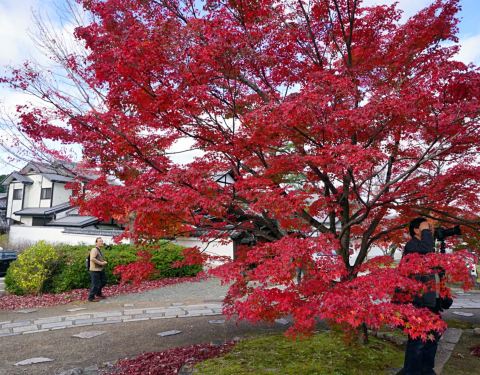这枫树很多,所以也导致红的先后不一。去的时候正值叶子红透的时候,象鲜血一样