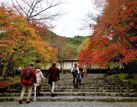 岚山中的又一处红叶胜地,因位于岚山深处距离车站较远,所以到了这里显得比其他地方清净得多岚山中的又一处红叶胜地,因位于岚山深处距离车站较远,所以到了这里显得比其他地方清净得多。广阔的参拜道和石阶两旁都是枫树。