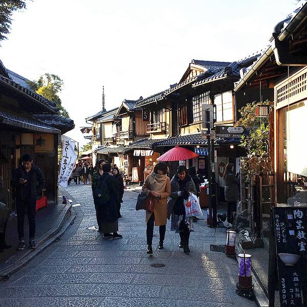 八坂塔也算京都东山的地标之一了,我们在酒店的宣传册里看到这张八坂塔的图片,佛系旅游的我们表示要去打个卡。八坂塔在二年坂三年坂这里,和那个榻榻米的星巴克离的挺近的。塔本身颜值一般,但和周围的红叶,日式小街融合在一起,就很有味道了,每当有和服妹纸走过时,就感觉很有意境。