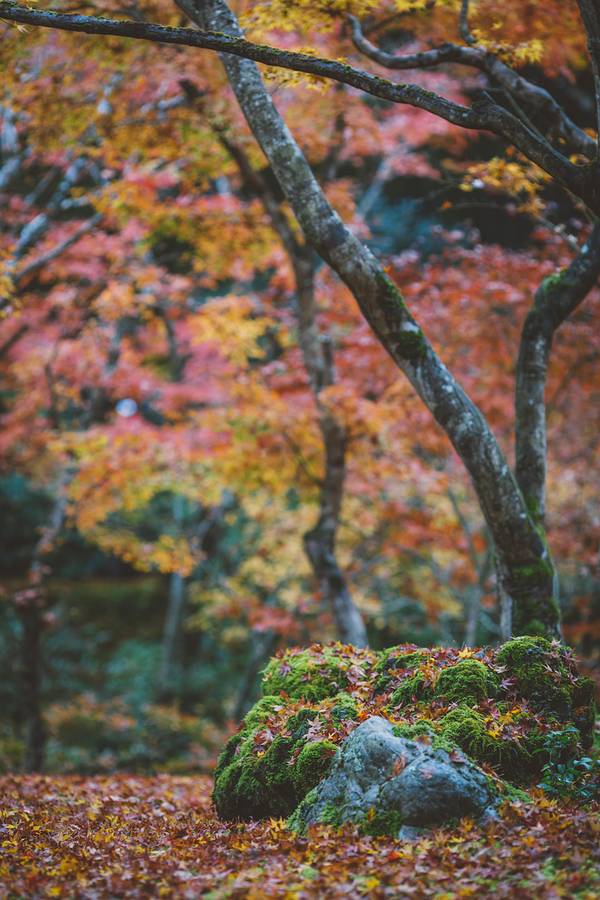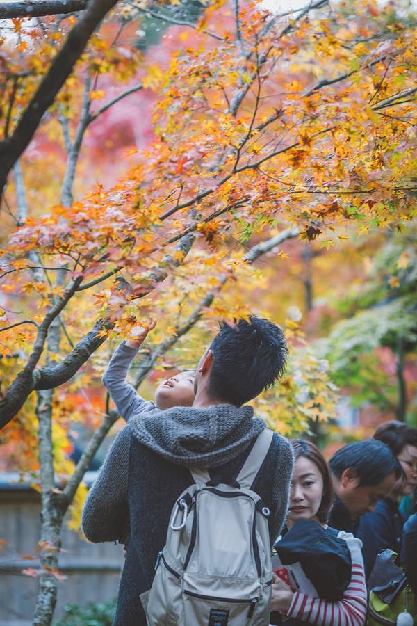 步入此处,可以安安静静地坐在地台上观赏阳光打在红枫叶上,那经脉清晰的叶片。寺庙后面有路可以登顶,俯瞰 京都 市区。去山上累了,下来可以在平台处休息。