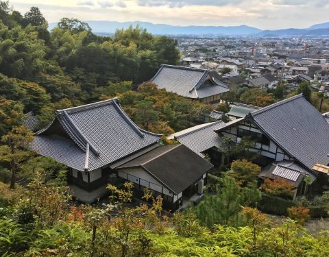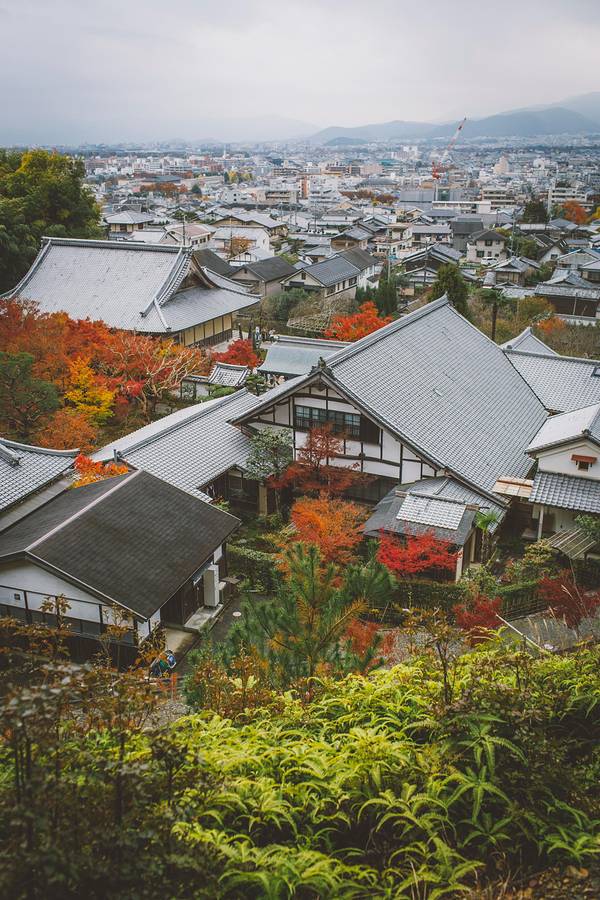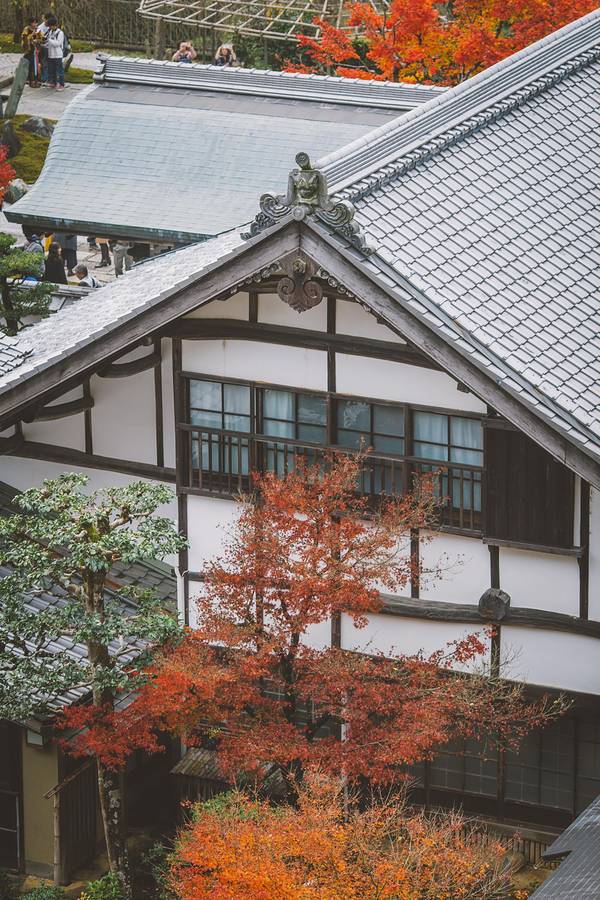 可以用玲珑来形容圆光寺。 步入此处,可以安安静静地坐在地台上观赏阳光打在红枫叶上,那经脉清晰的叶片。寺庙后面有路可以登顶,俯瞰 京都 市区。去山上累了,下来可以在平台处休息。