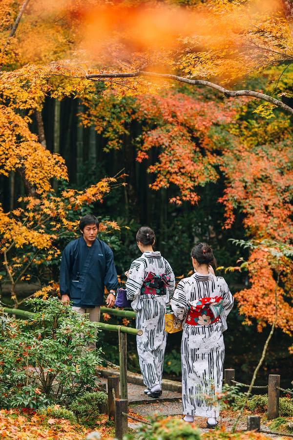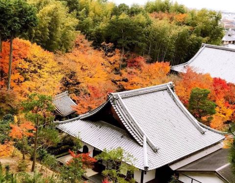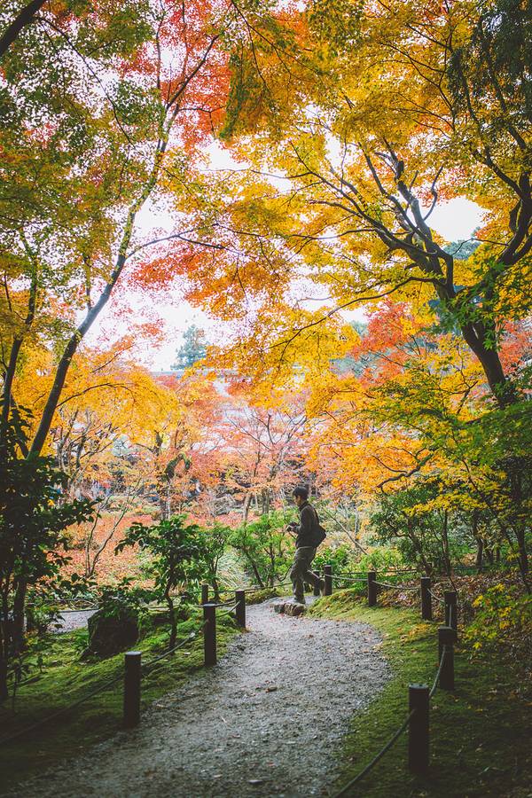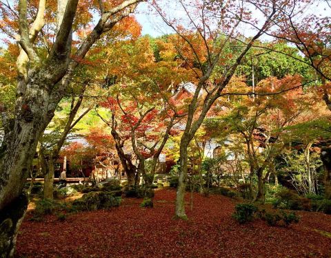 这个地方一般不是游客景点,但是是个绝佳的观赏秋叶的地方。坐在庙里,看着花园在你面前,你会觉得宁静极了。花园里有一个小竹园,和你在岚山看到的比起来要小得多了。你要是来了圆光寺,也可以去附近的其他庙宇看