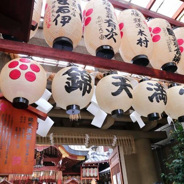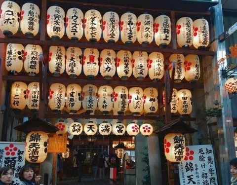 锦天满宫本是锦市场的起点,但我们是由市场的另一端进入,所以最后才看到锦天满宫,看过八坂神社的提...锦天满宫本是锦市场的起点,但我们是由市场的另一端进入,所以最后才看到锦天满宫,看过八坂神社的提灯,所以在这里看到提灯也并不觉得新奇,小小的神社里挤满了游客,我们在门口看了看就离开了。