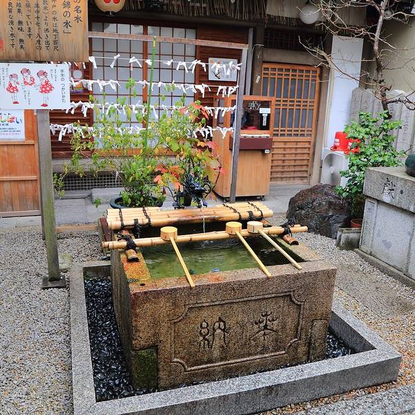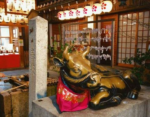 晚上:锦天满宫、新京极锦天满宫位于锦小路的东端与新京极通的交叉口,也是锦市场的起点。曾经在明治时代是最热闹的商店街,它与市集的交会之处便是以锦天满宫为中心。锦天满宫向外延伸至新京极、寺町京极、锦小路市场一带,所以虽然只是天满宫的分支神社,但却是香火鼎盛人潮汇聚之处。从早晨8点开到晚上8点半,应该当属营业时间最久的神社了吧~~主要是学生过来求学业顺利,一进门就被灯笼所吸引,白天就已经很美了,晚上来更加别有一番风味,灯笼亮起,闹中取静。御手池,后面标着手水礼神社里供奉着一头铜制的神牛雕像,据说摸了牛的脑袋会增加智慧,摸了身子能够保佑健康,所以那头牛被摸的金光锃亮哈哈。没想到就连神社里的绘马都是神牛图案。锦天满宫祭拜的神祇菅原道真,除了是一般人熟悉的学问之神外,也具掌管商业才能,因此不但兼负众多考生来祈求考个好成绩,庇佑着附近商业繁盛的意味也很浓厚。有趣的是,当初京都进行街道规划时,忘了考虑鸟居上方宽度的问题,导致鸟居与旁边的商店建筑发生了重叠,基于对神的尊敬,店家最后欣然同意让鸟居穿入建筑物中,认为这是幸运之事,更能得到神明保佑。神社很小,一进门就能看到朱印所,贩卖玉朱印以外还有很多御守。求签的话200日元一次。求签机是自动的哦~~投入相应的硬币后,里面的神兽从升降机上咬下来签纸转身吐出到签口,很有乐趣。不过这里的朱印是我买到的字里最不出彩的了,而且不是现场写出来,是交钱之后直接递给我一张印好的,到时候贴在朱印帐上,好不走心。离开了锦天满宫,我们乘坐公交车前往京都御苑参拜~~在锦天满宫时雨还挺大的,到了这里发现太阳雨下的更加明显一些,虽然蓝天白云,但雨下的很急很密。日本当地人非常喜欢太阳雨,他们把这当作幸运露水,所以在大街上看见大家都淋着,或许可能是有人忘了带伞,但即使没带伞他们也没面露慌张或躲起来避雨,反而坦然的挨淋,在下被这份淡定服的妥妥的。 展开