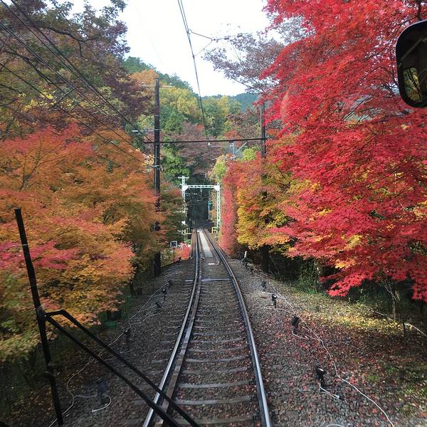 红叶季来京都游玩,这个叡山电车红叶隧道我是觉得真心推荐。说是隧道其实是叡山电车路线上位于市原站和二濑站这一段路程,列车两旁会有很密集的红叶出站,特别是早上有太阳晒下来的时候特别好看,红黄绿色相间隔真的不错。而且特别的还有红叶季时候晚上还会亮灯,电车会放慢速度通过,让游客能够更好的欣赏。