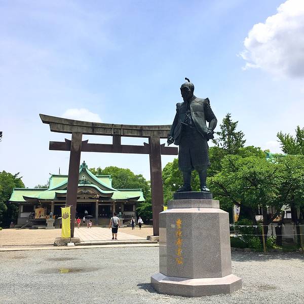 丰国神社,里面的空地上有丰臣秀吉的铜像,继续往里走是神社的宫殿,但是似乎也没有开门,侧面有个秀...丰国神社,里面的空地上有丰臣秀吉的铜像,继续往里走是神社的宫殿,但是似乎也没有开门,侧面有个秀石亭,是里面有些漂亮石头的小花园。随意逛逛,跟 大阪 城说再见。