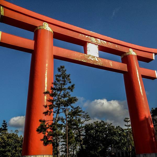 橙红色的建筑超级美,如果是特别晴朗的天气去,景色会更加壮观。还有非常非常大的鸟居橙红色的建筑超级美,如果是特别晴朗的天气去,景色会更加壮观。上午的时候人比较少,皇家神社的规制果然非常气派。门口有家茑屋书店,环境很好。还有非常非常大的鸟居。
