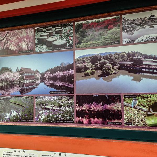 平安神宫内的神苑能看到四季应景的美丽花卉:3月下旬樱花开始盛开;5月10日左右有燕子花(カキツバタ);5月下旬至6月上旬则以花菖蒲为代表。