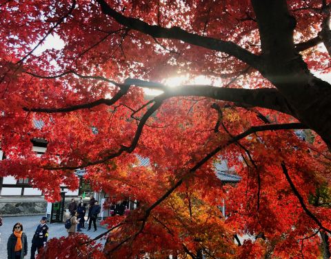 天龙寺红叶见顷,枫叶的红,屋顶砖瓦的黑,在阳光下熠熠生辉,好一派美丽的景象,很多租了和服的女性...天龙寺红叶见顷,枫叶的红,屋顶砖瓦的黑,在阳光下熠熠生辉,好一派美丽的景象,很多租了和服的女性在枫叶下拍照留影,我们一致决定,此行就不整这些,免得被喷^_^