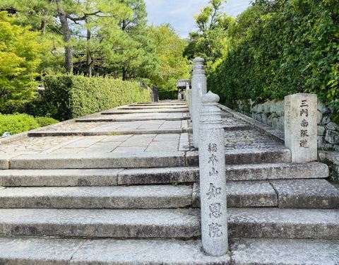 知恩院建于平安末期,创始人为法然上人,在京都的寺院中规模较大,为净土宗的总本山。知恩院每年除夕夜由17位僧侣齐力撞响院内的大钟,钟鸣浑厚悠远,响彻古都京都的夜空,已经成为除夕夜不可缺少的节目。藏有经典书籍此外,院内还有许多经典书籍。《无量寿经》、《观无量寿经》、《阿弥陀经》和世亲的《往生论》为该宗所依经典,称三经一论。后增加《大势至菩萨念佛圆通章》、《普贤菩萨行愿品》称之为五经一论。善导所著《观无量寿经疏》、《往生礼赞》、《观念法门》、《法事赞》、《般舟赞》等,为该宗主要代表作。
