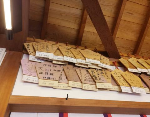 神社庭中有一棵十分壮硕的三百年樟树,给人一种非常安心的感觉。晴明神社虽不大,但有一种开阔感晴明神社虽不大,但有一种开阔感。巫女贩售御守的地方,旁边有椅子让人休息,此时可留意梁上挂的绘马,有些看来十分古远有趣。神社庭中有一棵十分壮硕的三百年樟树,给人一种非常安心的感觉。