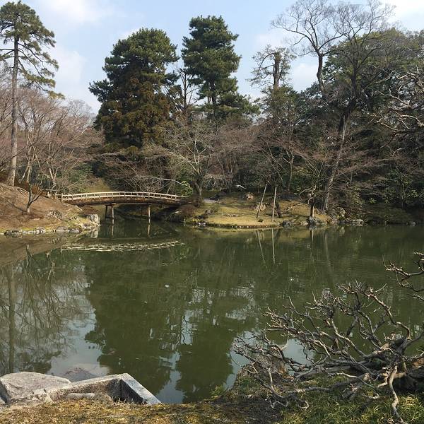 整体印象很好, 感觉很有参观意义的! 红叶桥据说在秋季红枫时节会非常漂亮很喜欢这地方, 看这地方是退位后的天皇之住地。 据说是在1630年作为后水尾上皇的御所而建。 同时在北边建造了女院御所。 在后水尾上皇还健在期间三度被火烧, 每次都重建过。 在1854年的大火中, 连同京都御所一...很喜欢这地方, 看这地方是退位后的天皇之住地。 据说是在1630年作为后水尾上皇的御所而建。 同时在北边建造了女院御所。 在后水尾上皇还健在期间三度被火烧, 每次都重建过。 在1854年的大火中, 连同京都御所一起被烧毁后, 因当时正巧没有上皇, 就此搁置未被重修。 如今留存的仙洞御所里, 除了醒花亭、又新亭这两间茶室以外, 御殿等建筑一概全无。 里面作为大宫御所的正门, 目前是天皇家族来到京都时都会使用。 京都大宫御所的御常御殿和南庭在大正年检, 内部改成了洋式风格。 园内种有红梅、白梅、竹林、松树, 该庭院被称为“松竹梅之庭院”。 里面的池子将红叶谷一分为二, 通称为南池和北池。 又新亭是1884年由近卫家献贡的茶室。 原先此地有从秀学院离宫移筑来的茶室, 后因火灾被烧毁。 阿古濑渊是个古池塘, 据说平安时代诗人纪贯之的宅邸就在此附近。 红叶桥据说在秋季红枫时节会非常漂亮。 醒花亭是位于庭院最南侧朝北的茶亭, 能将南池一览无遗。 醒花二字取自李白的诗, 在套廊东侧的门楣上有诗的拓本的匾额。 字为中国明朝郭子章所写。 整体布局很完美, 一些小径看着非常优雅, 不过不能走, 只被拦在外面参观。 整体印象很好, 感觉很有参观意义的! 展开