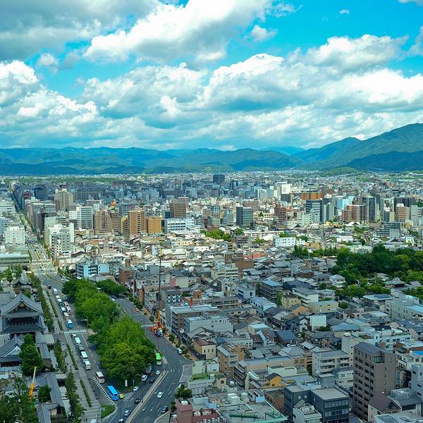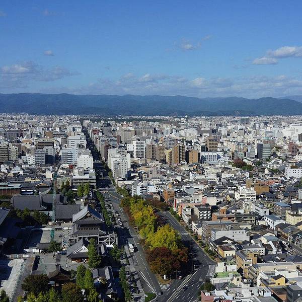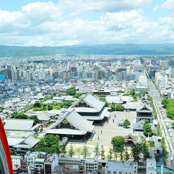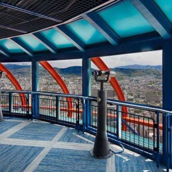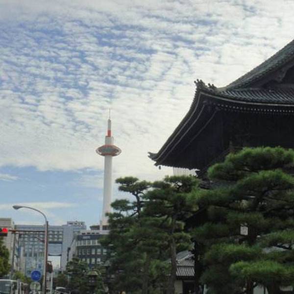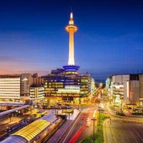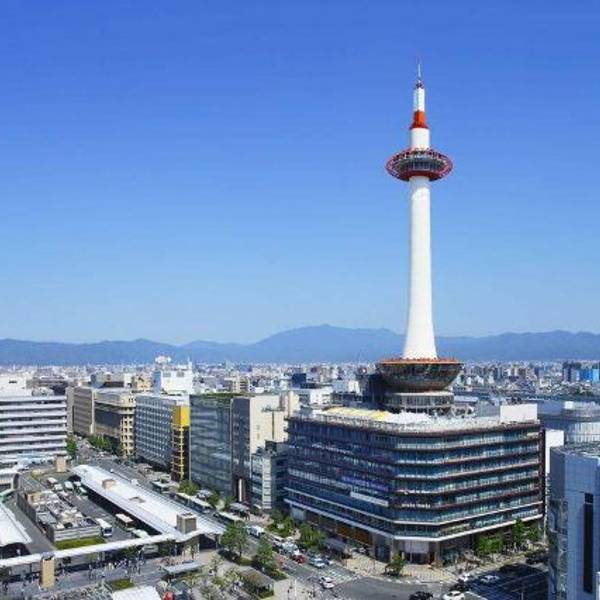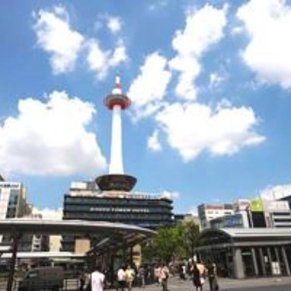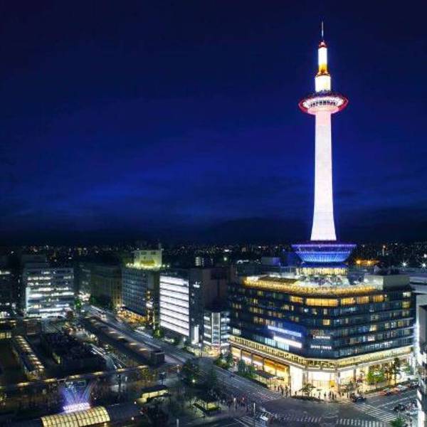 • 京都地标性建筑 • 从高达100米的展望台欣赏京都街景 • 提供众多娱乐活动与便利设施 矗立在JR京都站前的京都塔建于1964年,高约130。采用灯塔造型的外观看起来有点像日式蜡烛,十分醒目,晚上还会发出柔和的灯光,照亮京都的夜空。登上京都塔,可以将京都的街道风貌一览无遗。现在,京都塔已经成为京都大门口的象征性建筑,从这里眺望京都的夜景,也别有一番意思。整座京都塔分为上部的塔身及下部的综合商业楼。搭乘电梯至商业楼的11层(即T1层),再换乘专用电梯至T5层,就到了京都塔顶部的展望室。展望室站在展望室,你可以尽情俯瞰京都。出于对历史遗迹的保护,京都几乎没有高楼大厦,但你却能从低矮的楼房、整洁的街道和四处林立的寺庙、神社中邻略到这座古都独特的历史风韵。若是在夜间,向东还可以望见从清水寺射出的蓝色光柱。 △ 以灯塔为灵感设计的纤白细长的外观 △ 一览京都夜景 △ 从100米高处观赏京都的世界遗产和国家瑰宝