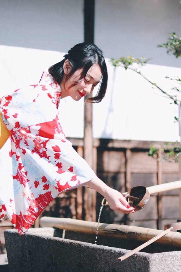 ✨在经典的日式场景下拍照,如神社,或者神社门前的手水舍。