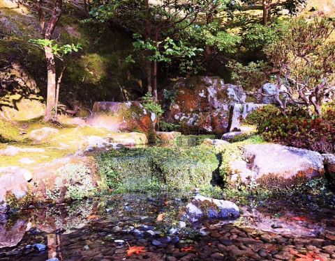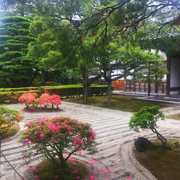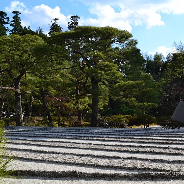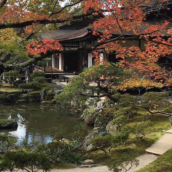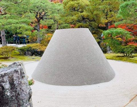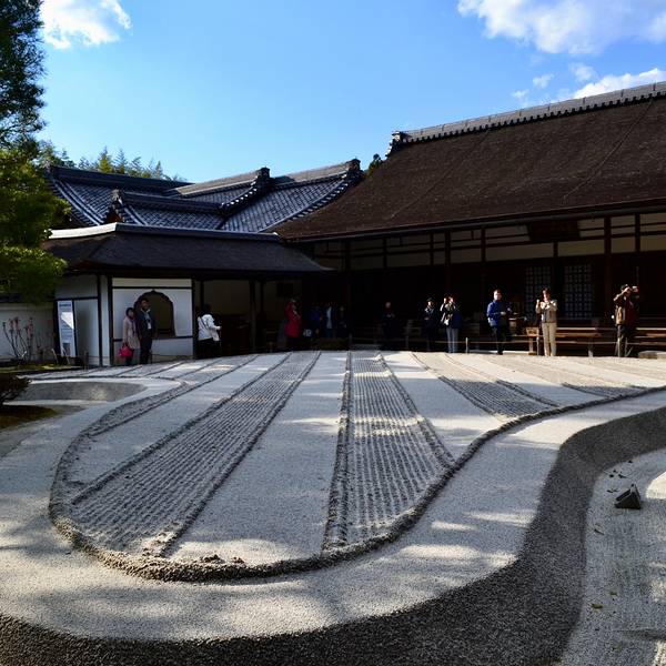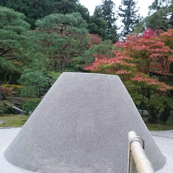 虽然“银阁”没有华丽的银箔外墙,但别出心裁修建的庭园、池塘以及庭院里由白沙堆成的山形向月台都让银阁寺显得格外清幽,可以沿着寺内的观赏标牌,慢慢走走,感受当时“东山文化”的独特风格。