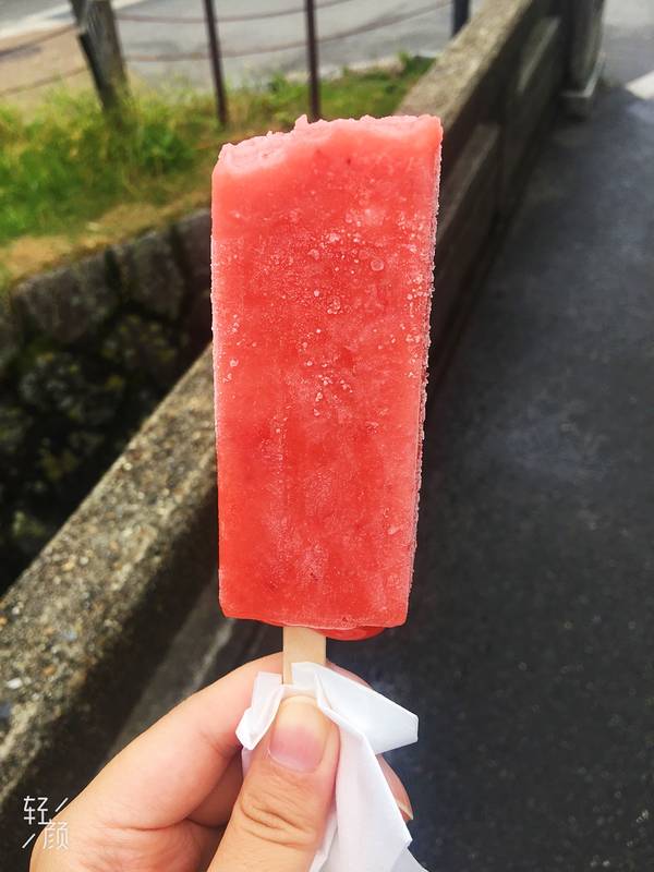 沿着步行径继续往前走,会看见被称为“银沙滩”的沙石园,当中有一个大型的圆锥体“观月台”。白沙象征着大海,用砂砾制造出的纹理则代表万顷波涛。这些沙砾造景是银阁寺最特别之处,也是日本庭园枯山水艺术的经典景观,雅致而巧妙,据说这样的设计是为了在满月之夜将月光返照入阁。银沙滩旁是寺庙的正殿,在其推拉门上显示了一些画作,但不能入内。观月台在感受到了寺内的清凉后,准备离开,前往下一站哲学之道。在出门后有着各类小吃美食,在京都边走边吃也成了一道美景。炎热的天气,最适合来一下短暂的清凉。随手买的手工棒冰,草莓味的,还不错。 展开