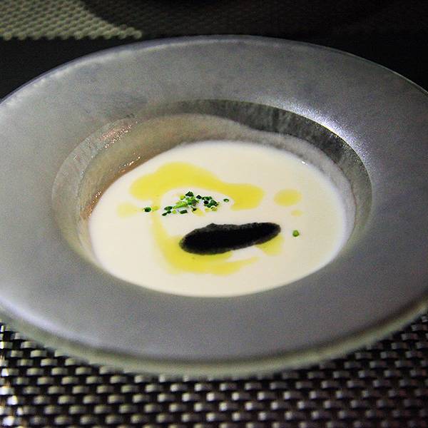 去不了清水寺也不会难过的另一个原因,就是我们要去吃好吃的了! 还记得我跟你们说过的鸭川川床吗?因为传统日本会席吃得有点多了,而且未来几天还要再吃,所以这次我们就选择了一家日法料理店,很有格调,而且店里所有的蔬菜都是京都本地产,所以他们在其他任何地方都不会有分店,包括东京。因为他们特别强调食材的产地与新鲜程度,京都本地的蔬菜,在日本可是非常有名气的哟! 我们走到门口便会有一个身材一级棒,颜值特别高的妹子前来询问我们的订单,然后安排入座……态度简直好到我无话可说……