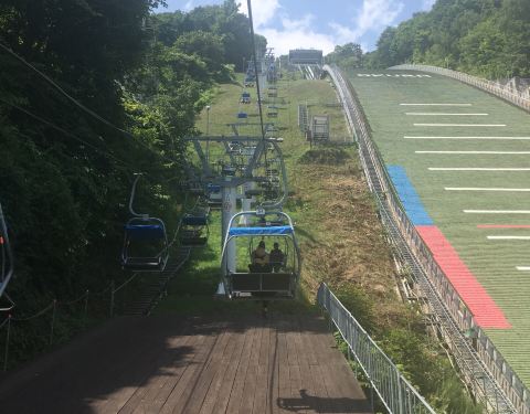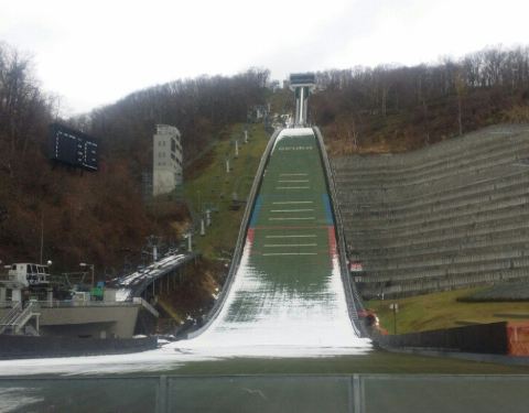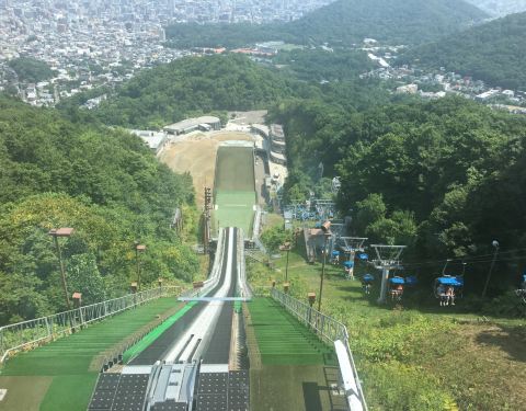 曾作为札幌冬奥会的场馆,从高处眺望辽阔的全景,感受起跳地点的陡峭斜坡。
