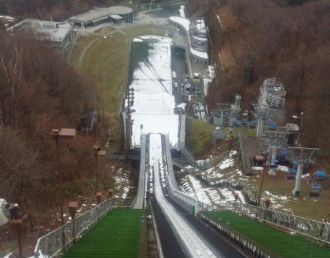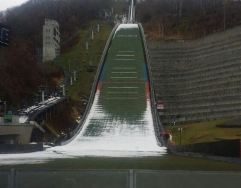 大仓山跳台竞技场是一个位于日本北海道札幌市中央区宫之森的标准跳台滑雪场地,其所处位置是高达307米的大仓山东斜面,是日本国内举行过多次跳台滑雪竞技大赛的场所。场地内多可容纳约三万名观众。原是大仓财阀第二代总裁、大仓酒店创始人大仓喜七郎男爵捐赠给札幌市的跳台滑雪比赛场,所以,1932年正式开放时被命名为“大仓跳台滑雪运动场”。后来,在为1972年冬季奥运会的举办而进行大改建时,改名为“大仓山跳台滑雪比赛场”。从海拔307米的起跳地点,可以望见札幌市街区及石狩平原的全景,在右后方,可望到举行70米跳台滑雪的“宫之森跳台滑雪竞技场”。冬天,是一片白雪覆盖的“雪白”景色,在没有比赛的日子里,游人可以站在位于起跳地点后面的“展望休息室”模拟体验跳台滑雪者起跳时的视线。夏季时用洒水的方法来保证跳台滑雪,所以,在这个全天候的比赛场里,夏季有时也会看到跳台滑雪者的训练。