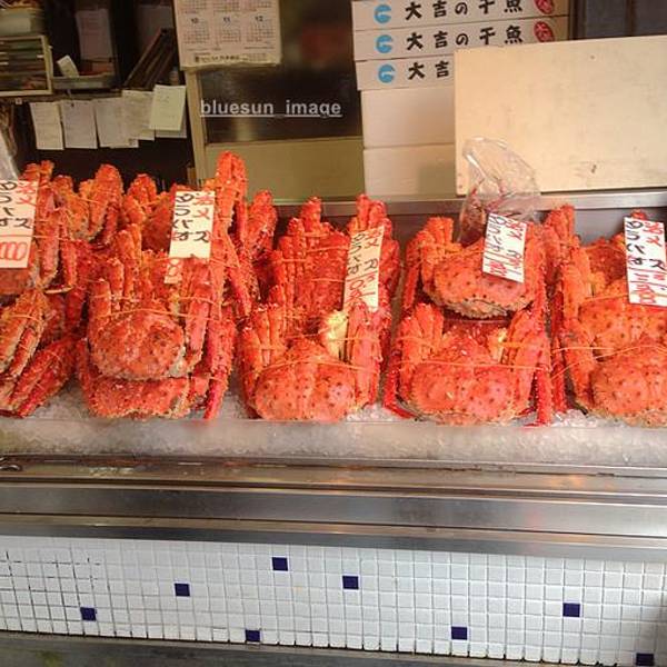 其实场外市场就是海鲜朝市,一条街上全是各种小铺,主打各种大螃蟹,还有很多北海道特产的农产品。