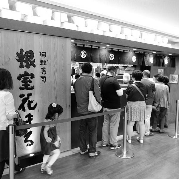 发祥于北海道最东端根室半岛的寿司“ 花丸”( 花まる,Hanamaru) 在札幌车站的商场美食街众多店铺里永远是能形成客人排队等候之景的一家店。它也是几乎所有旅游导航上都会介绍的一家回转寿司店。花丸寿司的菜单随季节而变化,食材均为当天从根室直接送到店铺的新鲜渔获。