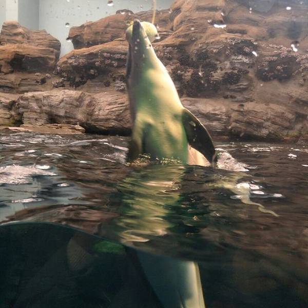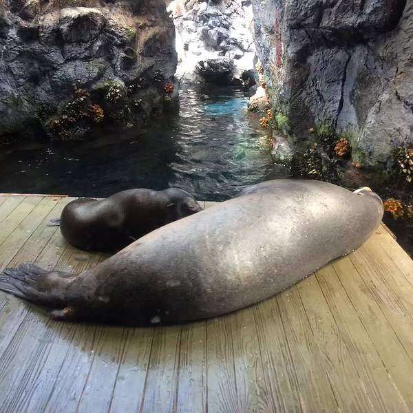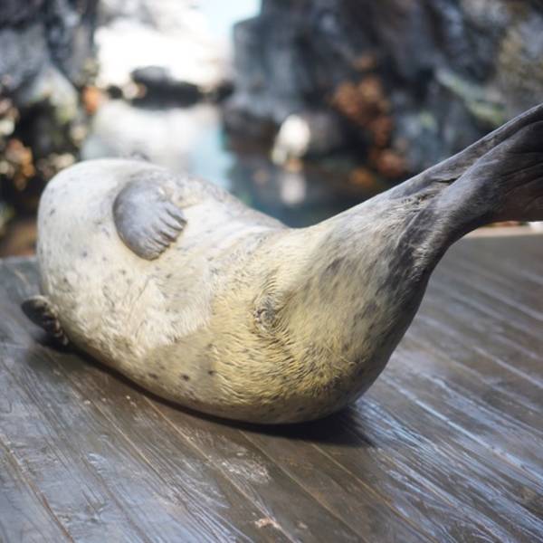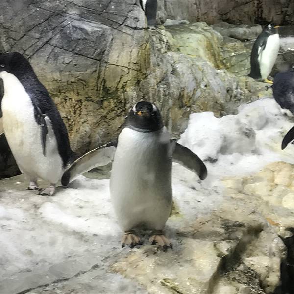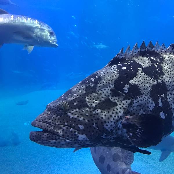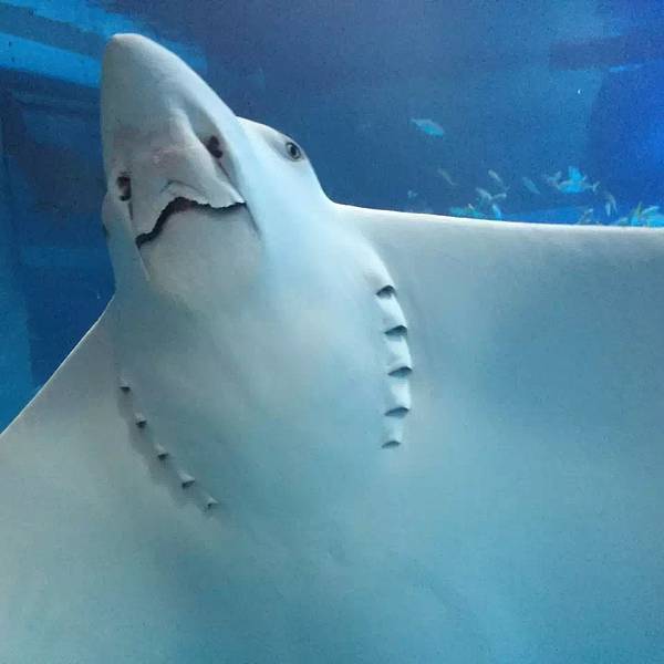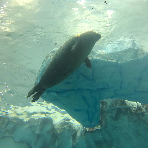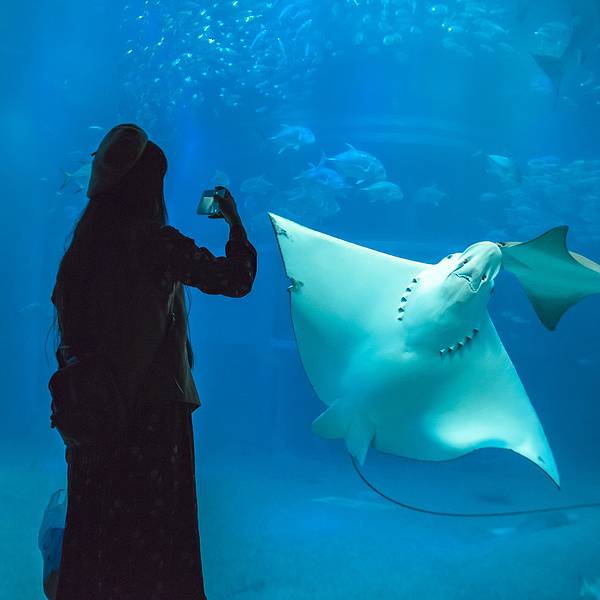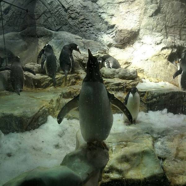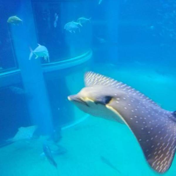 在水槽中央游弋着的就是海游馆的大明星鲸鲨,这可是世界上最大的鱼类哦。每一个观景窗前都有休息的座位,非常人性化的设计,看到有爱的一幕,一位爸爸正在指着这些海洋生物和女儿讲解,语气轻柔,讲得十分生动,乖巧的女儿听得也十分认真。被这些可爱的海洋小生物萌翻啦,赶忙用手机拍起了小视频,想记录下它们的一颦一动,心都随它们游进了海洋里。一直想和“笑脸鱼”蝠鲼来一次亲密接触,它们天生带着微笑,看起来像是个乐天派,在海里游得十分欢脱,速度也是杠杠滴,而且经常会在你不经意间游到你的面前来,在冉先森按了无数次快门后,终于捕捉到一张完整的亲密照。海游馆的内部设计非常棒,水箱够深动物有足够的活动空间,每一只动物都胖嘟嘟状态非常好,展示方式很好看的很清楚,整体下来体验感非常好。和其他海洋馆不同的是,海游馆里没有鲸鱼、海豚演出,但是冬季会有特别的企鹅散步活动。