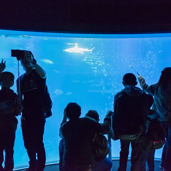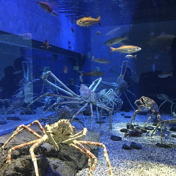 好吧,我们没敢上看企鹅散步,就只能隔着玻璃看着憨态可掬的它们。虽然海游馆没有动物表演秀,但展示的620种共3万余只形形色色的生物依然是看点十足,不仅包括各种鱼类,还有两栖类、爬虫类、鸟类、哺乳类以及无脊椎动物、植物等,非常壮观。海游馆独特的触摸池可以让我们有机会亲近到平日难得一见的海洋生物,可以触摸到鳐鱼和小鲨鱼。