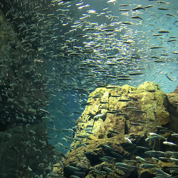 一层一层,由上而下,沿着中央水缸回旋而下,一层层向下参观。有的水缸跨越好几层楼,这样你就可以在不同的深度、以不同视角观察其中生物的状态。最惊喜的还是水深9米、跨越三层楼的巨型水槽“太平洋”,逼真重现了环太平洋火山带的景象。