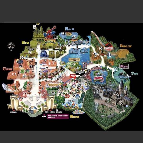 2、入园左侧有游客服务中心,可以领取中文服务指南。乐园里外都有投币式寄存柜,地点为进门右侧建筑物内、环球奇境内、大门外两侧。
