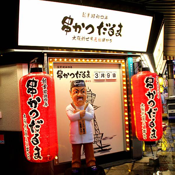 在这里食到了正宗日本章鱼丸。3.品尝种类丰富的名小吃炸串,还有章鱼烧、河豚料理等地道美味正对动物园的门口,就是新世界美食街。号称日本第一炸串的“横纲”(门口立着福神Billiken大塑像)、以清爽口味著称的“八重胜”(位于匠匠横丁)、人气颇高的元祖炸串达摩(だるま)